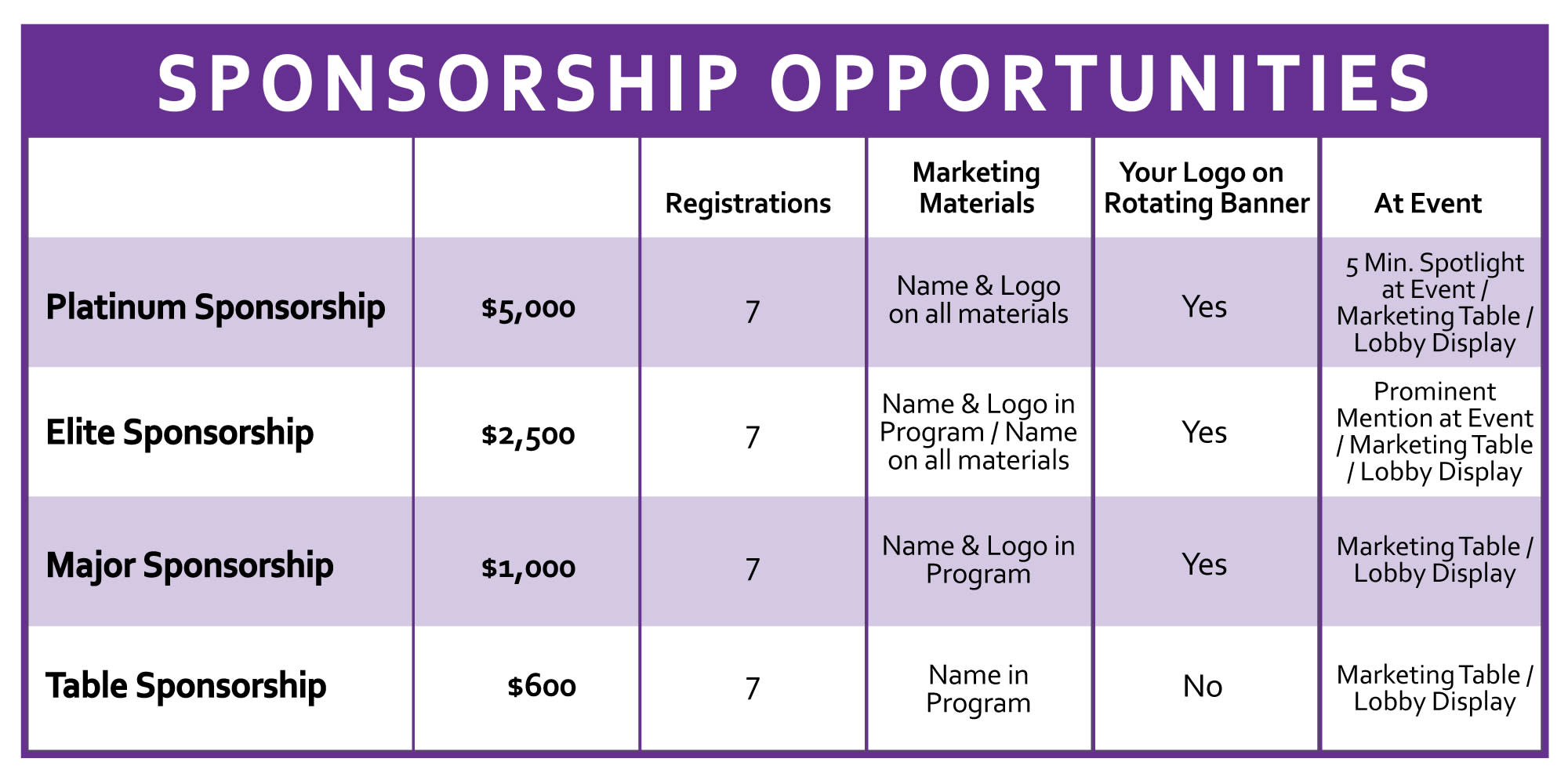 All organizations that purchase a table sponsorship (7 seats - $600) or above may choose to donate their Marketing table to an organization of their choice or the Chamber can help find an organization in need. The Women in Business Summit draws around 200 women from Davis and the surrounding counties annually. Please see the table above for sponsorship options and reserve your table today.